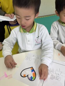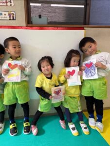 We made special Valentine’s cards by sticking torn paper together to form giant hearts! 💌✨